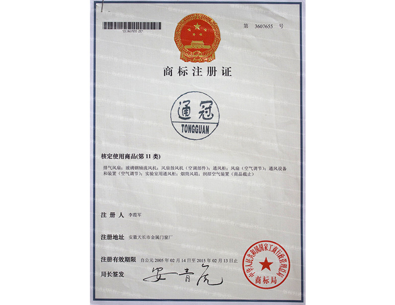 无动力风机;自然通风器商标证书