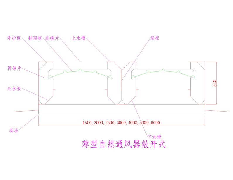3000×n、4000×n (用于压型钢板或现浇混凝土屋面) 6000×n (用于预应力钢筋混凝土屋面板屋面) |