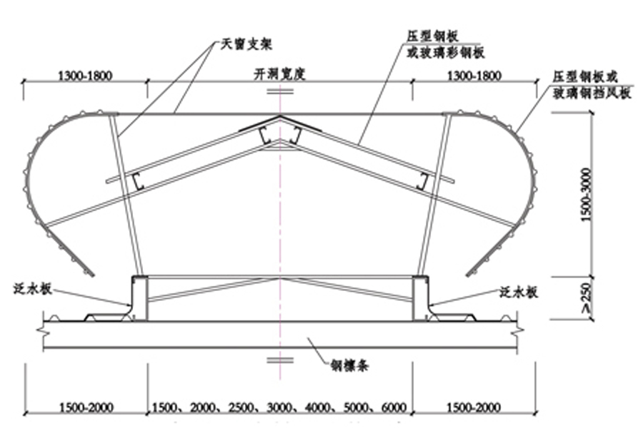 注:n为天窗洞口长度模数3000、4000及6000的倍数,在天窗代号中洞口长度标注为30n、40n及60n,由工程设计定。